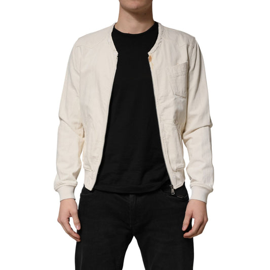 Dolce & Gabbana Off White Cotton Full Zip Denim Men Blouson Jacket