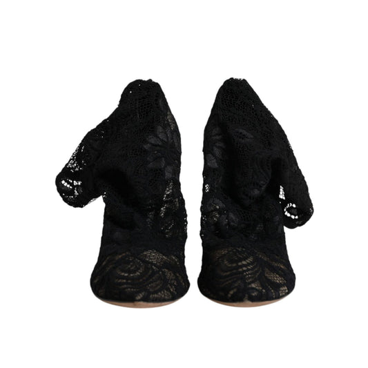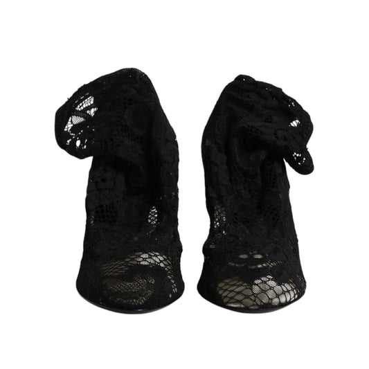 Dolce & Gabbana Black Lace Stretch Heels Mid Calf Boot Shoes