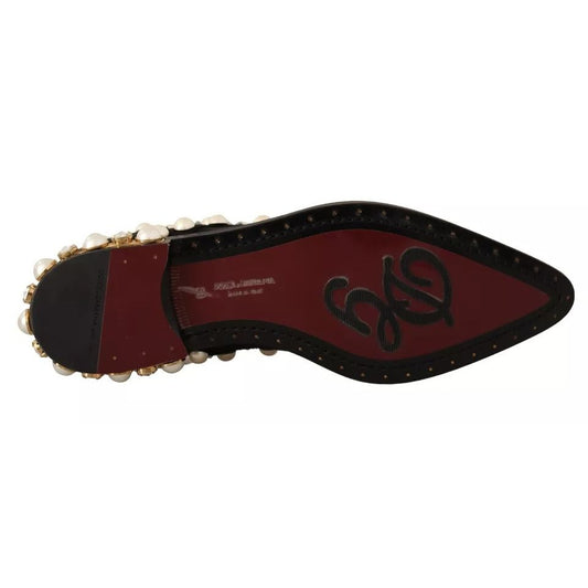 Dolce & Gabbana Black Lace Up Jewelled Formal Flats Shoes