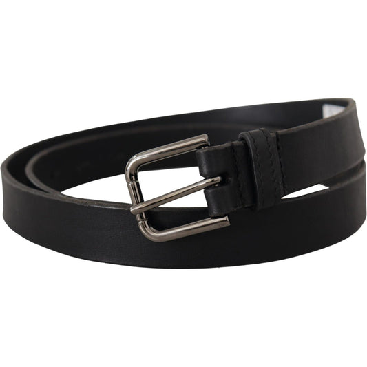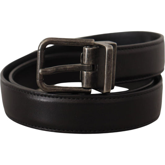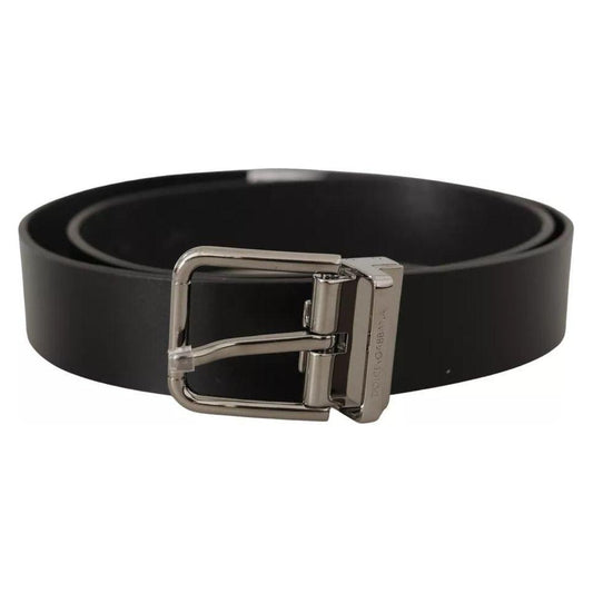 Dolce & Gabbana Black Calf Leather Silver Logo Metal Buckle Belt