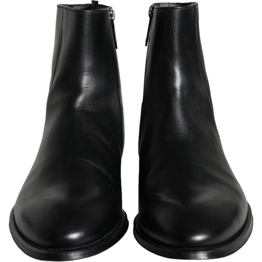 Dolce & Gabbana Black Calf Leather Men Ankle Boots Men Shoes