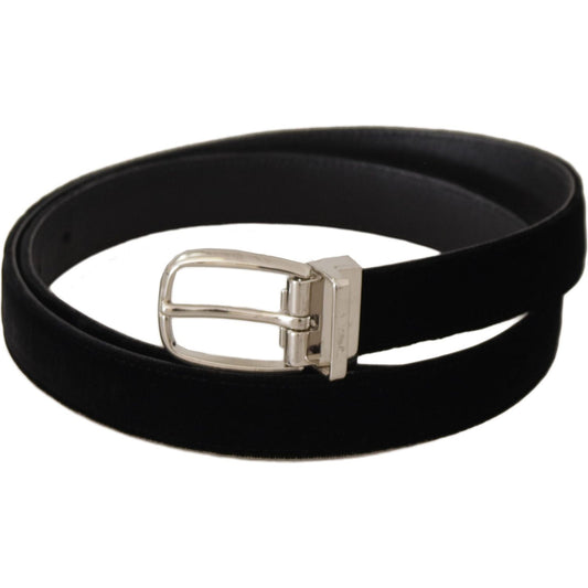 Dolce & Gabbana Black Casual Velvet Silver Metal Logo Buckle Belt