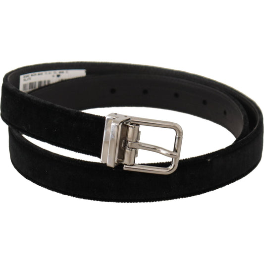 Dolce & Gabbana Black Casual Velvet Silver Tone Metal Buckle Belt