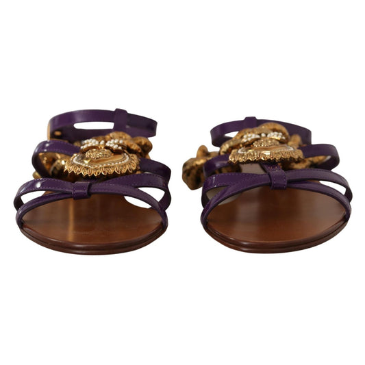 Dolce & Gabbana Purple Leather Devotion Flats Sandals Shoes