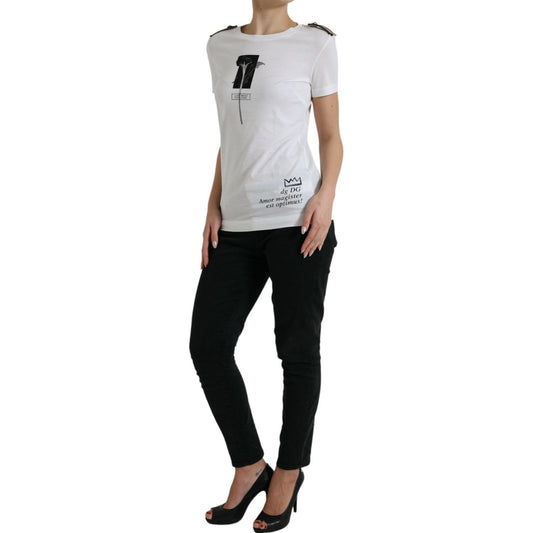 Dolce & Gabbana White Black Roses Crewneck Cotton T-shirt