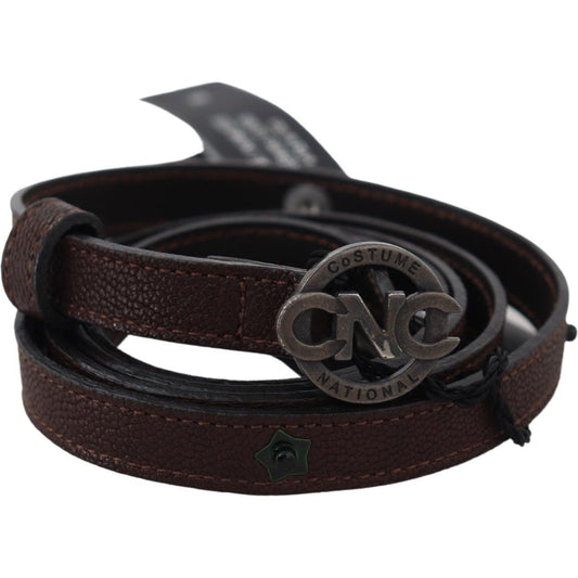 Costume National Brown Skinny Leather Round Logo Buckle Belt