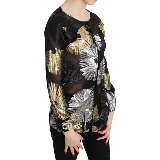 Dsquared² Gold Silver Silk Jacquard See Through Top Blouse
