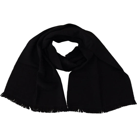 GF Ferre Black Wool Neck Wrap Shawl Fringes Scarf