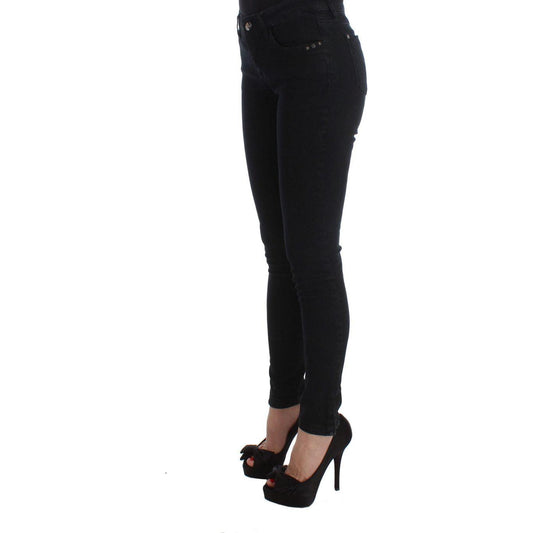 Just Cavalli Black Cotton Low Waist Skinny Denim Pants