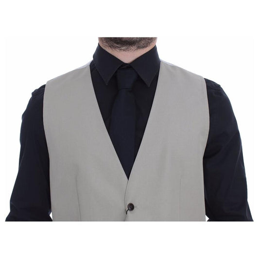 Dolce & Gabbana Beige Cotton Silk Slim Fit Waistcoat Vest