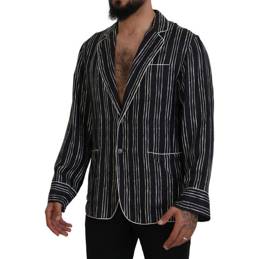 Dolce & Gabbana Blue Striped Silk Pajama Shirt Jacket