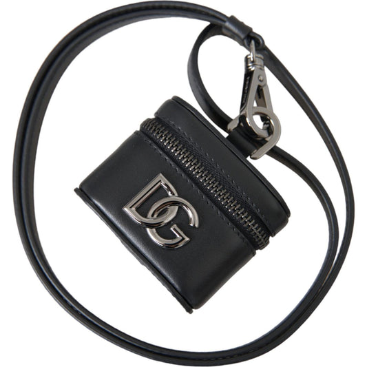 Dolce & Gabbana Black Plain Leather Silver Metal Airpods Case