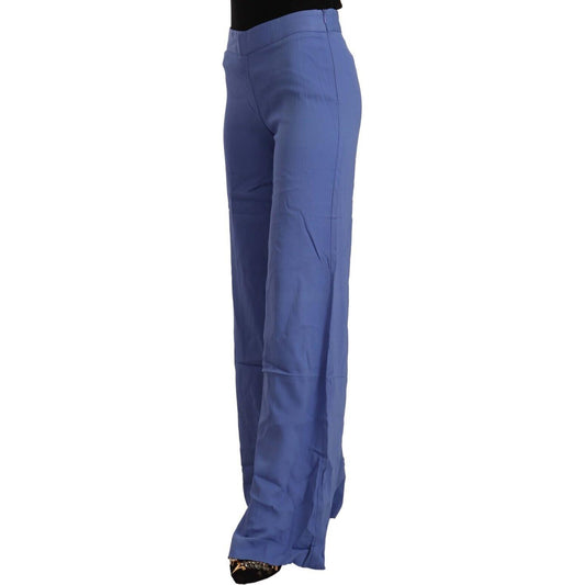 P.A.R.O.S.H. Blue High Waist Viscose Straight Wide Leg Pants