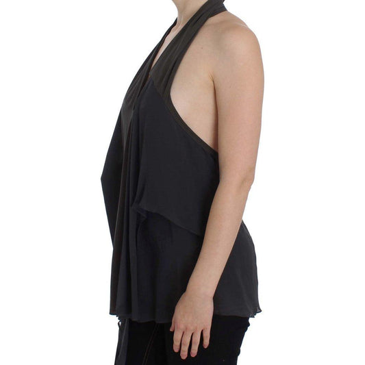 Karl Lagerfeld Gray Black Silk Blouse Top