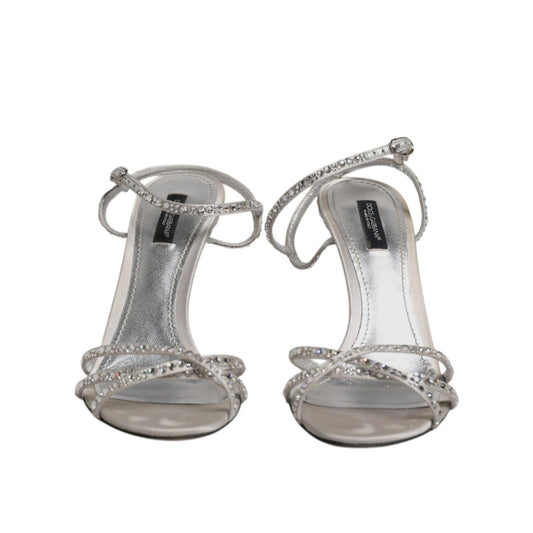 Dolce & Gabbana Silver Strass Ankle Strap Heels Sandals Shoes