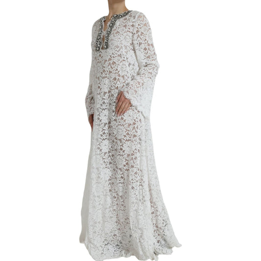 Dolce & Gabbana White Lace Crystal Embellished Shift Dress