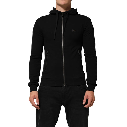 Dolce & Gabbana Sweater Black Cotton Hooded Men Sweatshirt Sweater