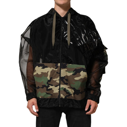 Dolce & Gabbana Black Camouflage Hooded Men Full Zip Sweater