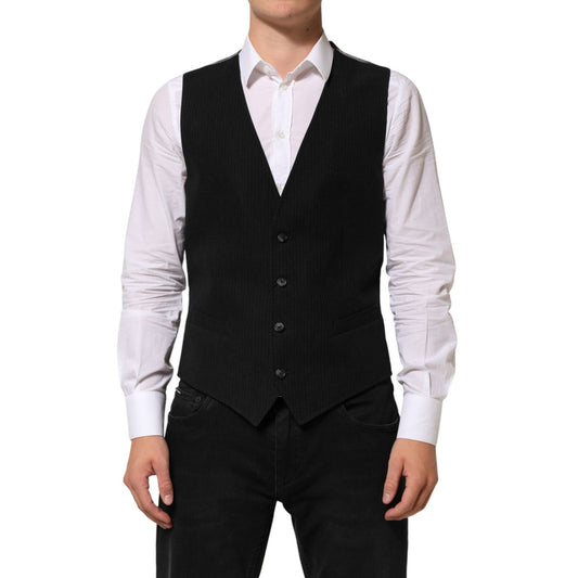 Dolce & Gabbana Black Cotton Waistcoat Dress Men Formal Vest