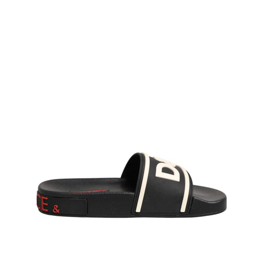 Dolce & Gabbana Black Rubber Slides Sandals Beachwear Shoes