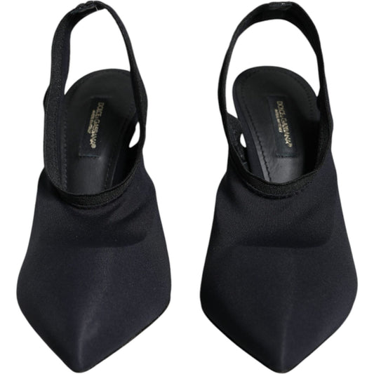 Dolce & Gabbana Black Jersey Stretch Heels Slingback Shoes
