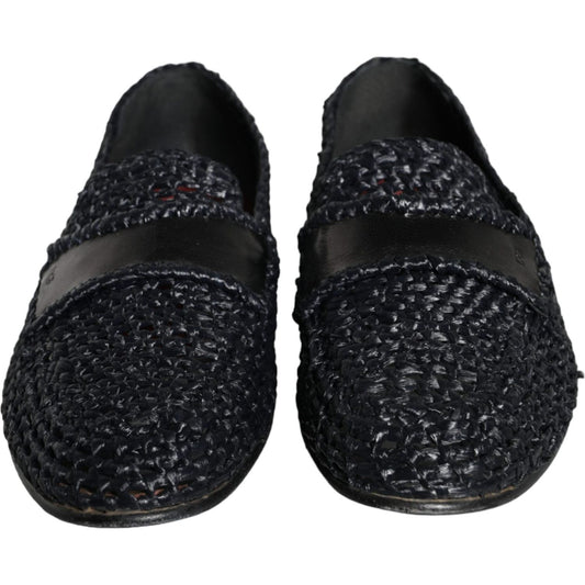 Dolce & Gabbana Black Woven Raffia Slip On Loafers Men Shoes