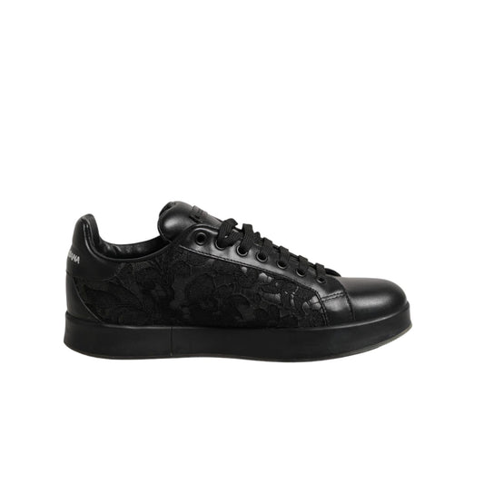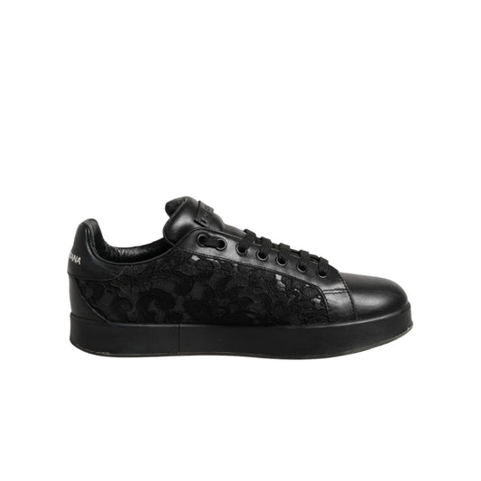 Dolce & Gabbana Black Floral Lace Low Top Sneakers Shoes