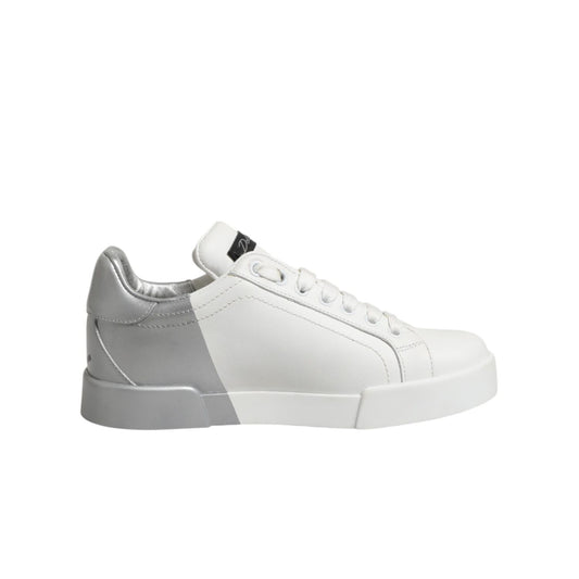 Dolce & Gabbana White Gray Low Top Leather Sneaker Shoes