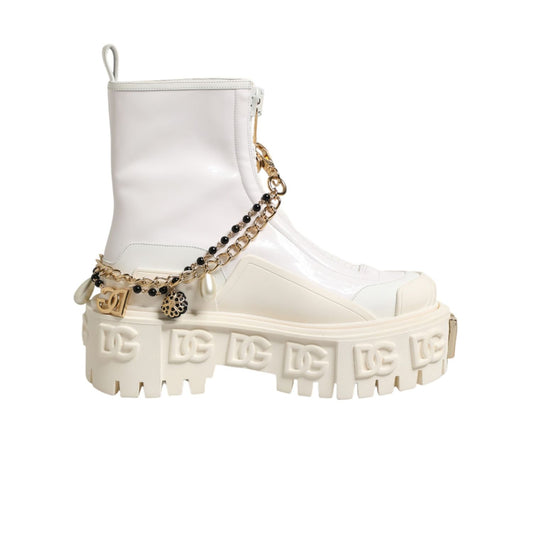 Dolce & Gabbana White Leather Rubber Logo Ankle Boots Shoes
